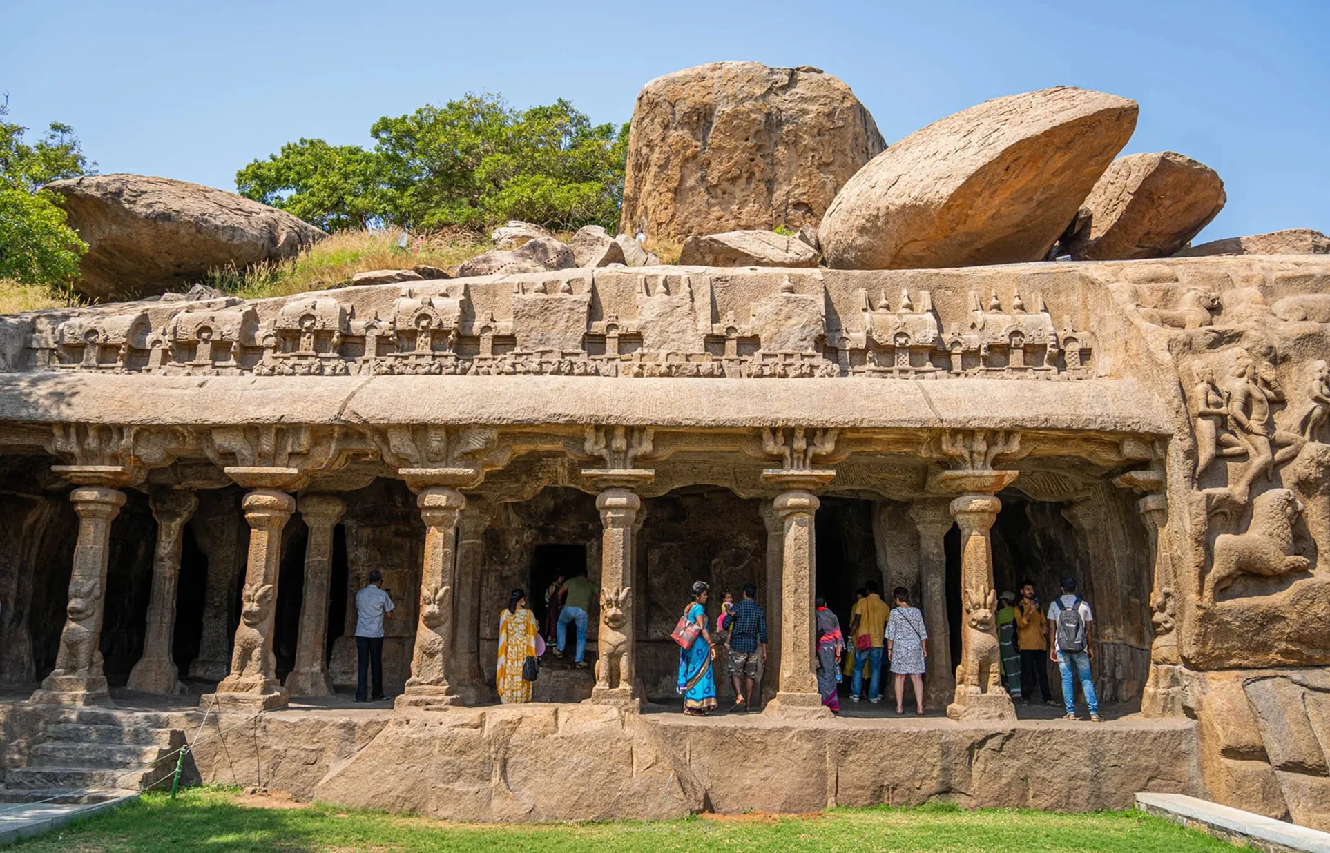 Mahabalipuram, also called Mamallapuram, is a historic coastal town in Tamil Nadu, India, known for its ancient rock-cut temples and monolithic sculptures, which are among the finest examples of Dravidian art and architecture. It flourished as an important seaport during the Pallava dynasty’s reign