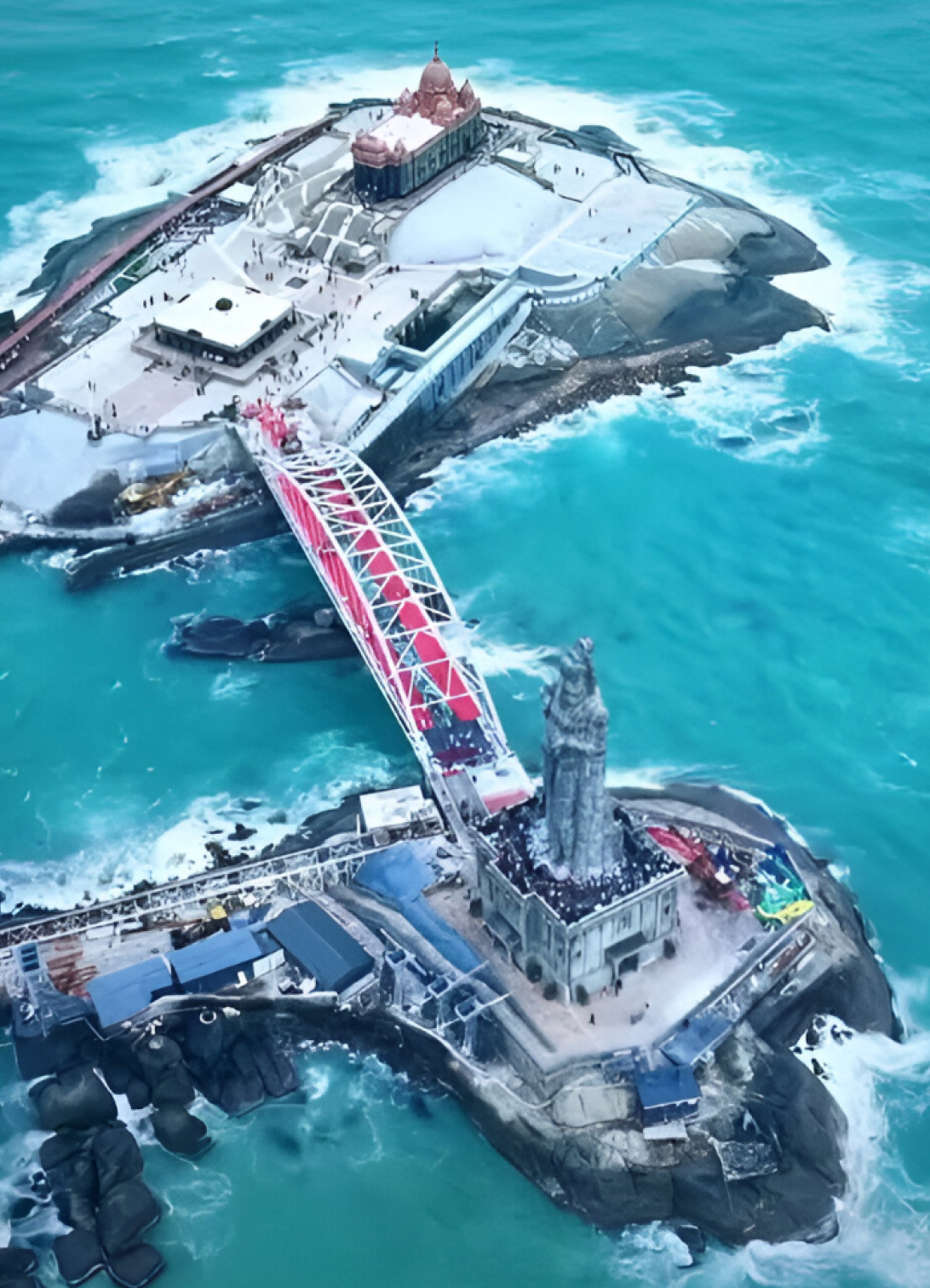 The history of the Thiruvalluvar Statue dates back to December 1975 when the project was conceived by then Chief Minister M. Karunanidhi. The foundation stone was laid on April 15, 1979, by then Prime Minister Morarji Desai, with the presence of the Chief Minister M.G. Ramachandran. However, actual work on sculpting the statue started much later, on September 6, 1990, when funds were allocated for the project. The sculpting work was led by Dr. V. Ganapati Sthapati, a renowned Indian sculptor and former principal of the Government College of Architecture at Mahabalipuram. Dr. Ganapati Sthapati was chosen from over 300 master builders because of his suggestion for an all-stone monument, citing the durability of stone over metal. The project saw a temporary halt likely due to political changes but resumed vigorously in 1997 when Karunanidhi returned to power. About 150 workers, including sculptors and assistants, worked up to 16 hours a day to complete the statue, which was placed on its pedestal on October 19, 1999. Key Highlights The statue weighs about 7,000 tonnes. The right hand's three fingers symbolize the three divisions of the "Thirukkural." The statue slightly bends at the waist, reminiscent of a dancing pose similar to the Hindu deity Nataraja. It is architecturally robust, having survived the 2004 Indian Ocean tsunami unharmed. The statue is hollow inside, but visitors can climb only up to the foot.